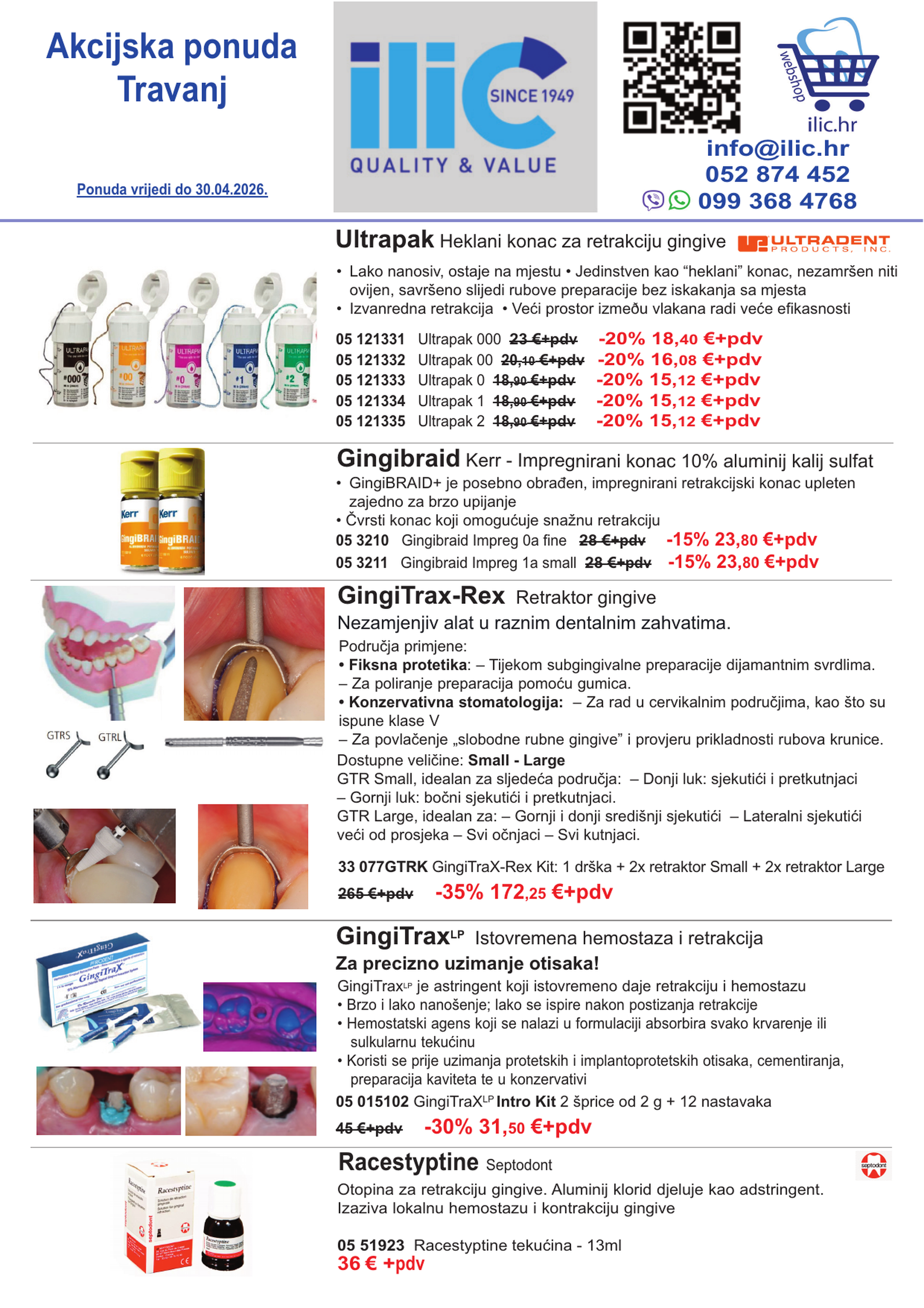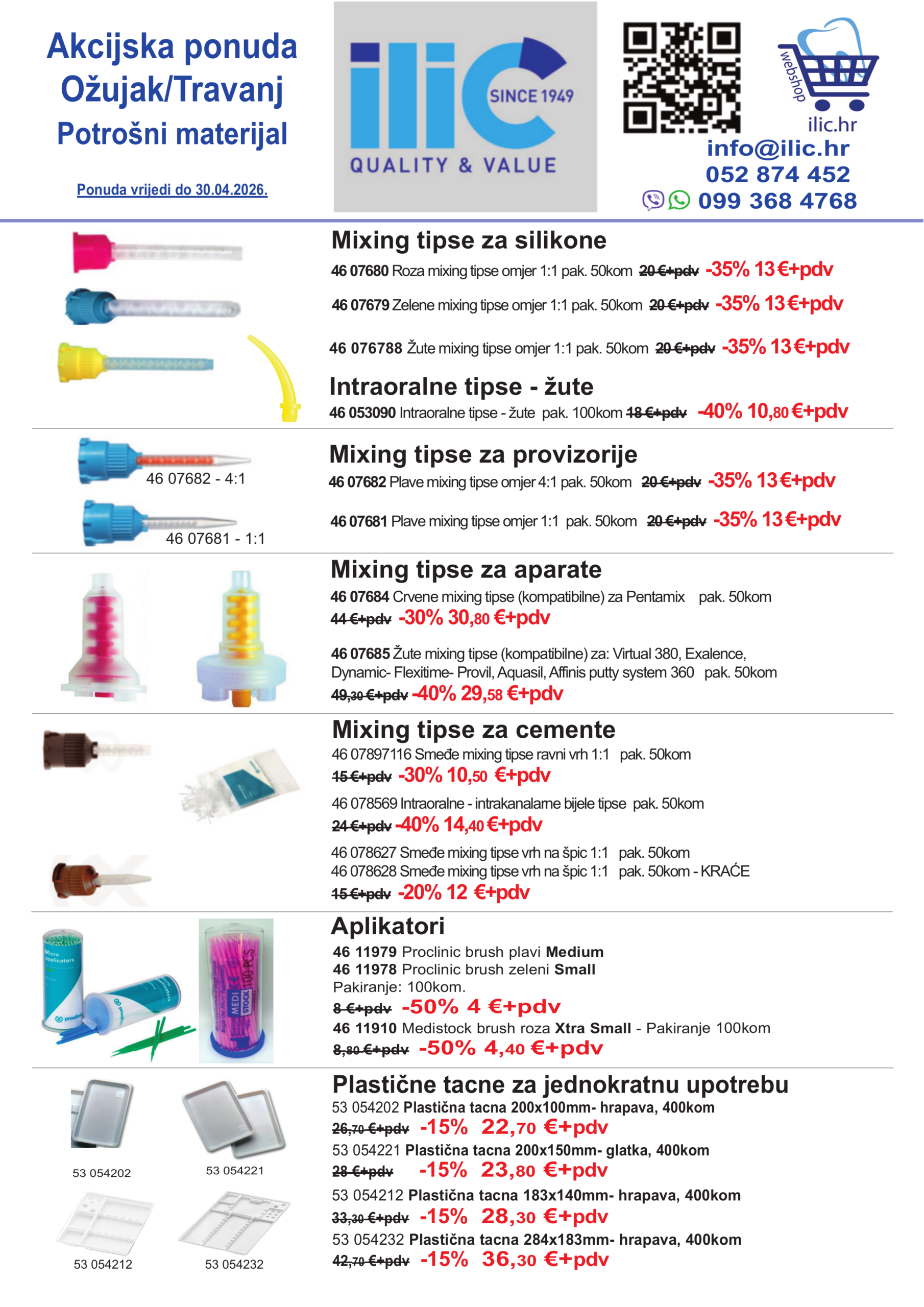Na našoj stranici možete naći sve što je potrebno u stomatološkoj ordinaciji i zubnom laboratoriju. ILIĆ opskrbljuje stomatološki svijet sa inovativnim i visokokvalitetnim proizvodima. Od 1949 do sada naša je kuća narasla i postala jedna od vodećih u Italiji u sektoru ponude medicinskih proizvoda u stomatologiji. Kuća Ilić proširila je svoju djelatnost 2005 god. u Hrvatskoj. Slobodno nam se obratite za informaciju ili narudžbu.