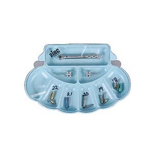 Zahvaljujući odvojenim prostorima za vrhove odvijača i ključa, smanjuje se vjerojatnost oštećenja. Oblik ladice doprinosi postavljanju u skladu s položajem implantata i sprječava miješanje komponenti. Poklopac sprječava ispadanje implantata ili instrumenata.